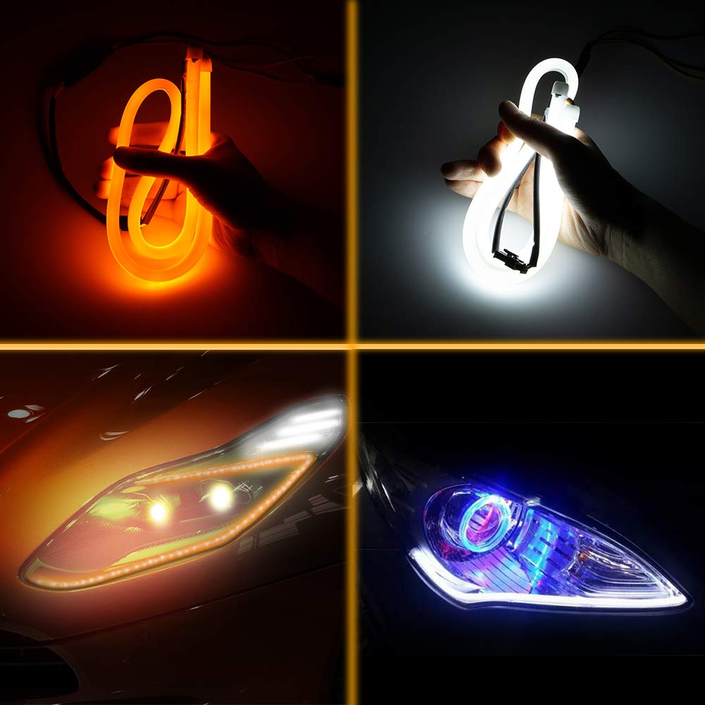 ◎DRL driving light and turn signal light-Work as a daytime running light with white/blue light and work as a turn signal light with following the yellow light.